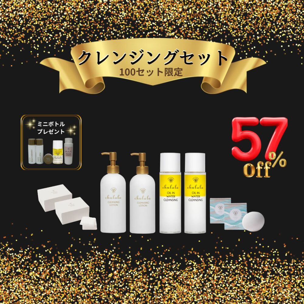 ちゅららの「クレンジング」にこだわったそれぞれ2個ずつのセットです!ちゅらら王道のクレンジングローションをはじめ、全身にも使用可能なハーバルソープまで含むとても嬉しいセットです。そして、こちらには「ミニボトル」のプレゼントもついてますので、このチャンスにぜひ!!