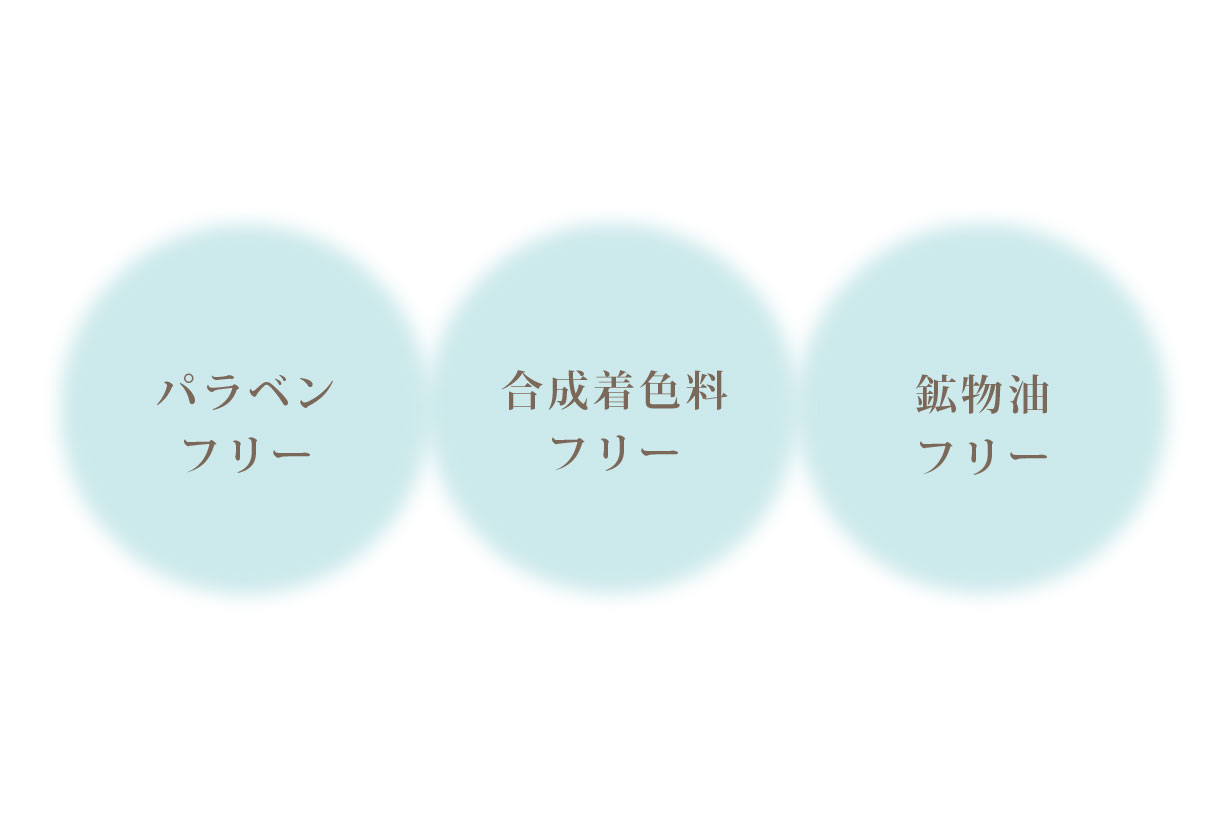 パラベンフリー、合成着色料フリー、鉱物油フリーで地肌にも優しい仕様です。