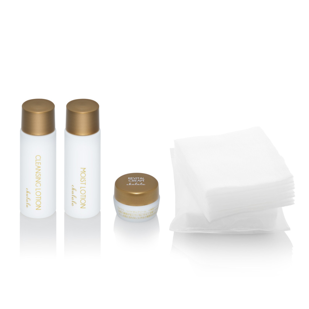 ミニボトルにコットンが付いて、トライアルはもちろん旅行にも最適なセット。